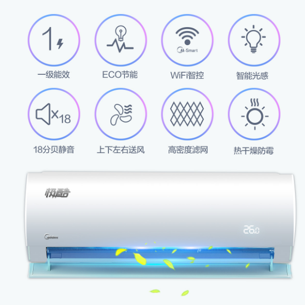 美的 KFR-35GW/WCBD3@大1.5匹p壁挂式智能冷暖定频空调挂机